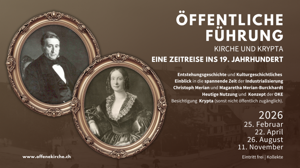 … ist eine Citykirche für Basel und die Region. Seit 1994 macht sie geistliche, kulturelle und soziale Angebote für alle Menschen, ungeachtet ihrer Herkunft, Hautfarbe, sexuellen Orientierung oder Religion. Sie ist offen für alle Menschen guten Willens. Sie lebt die jüdisch-christliche Tradition in postkonfessionellem Verständnis und interreligiösem Bewusstsein.