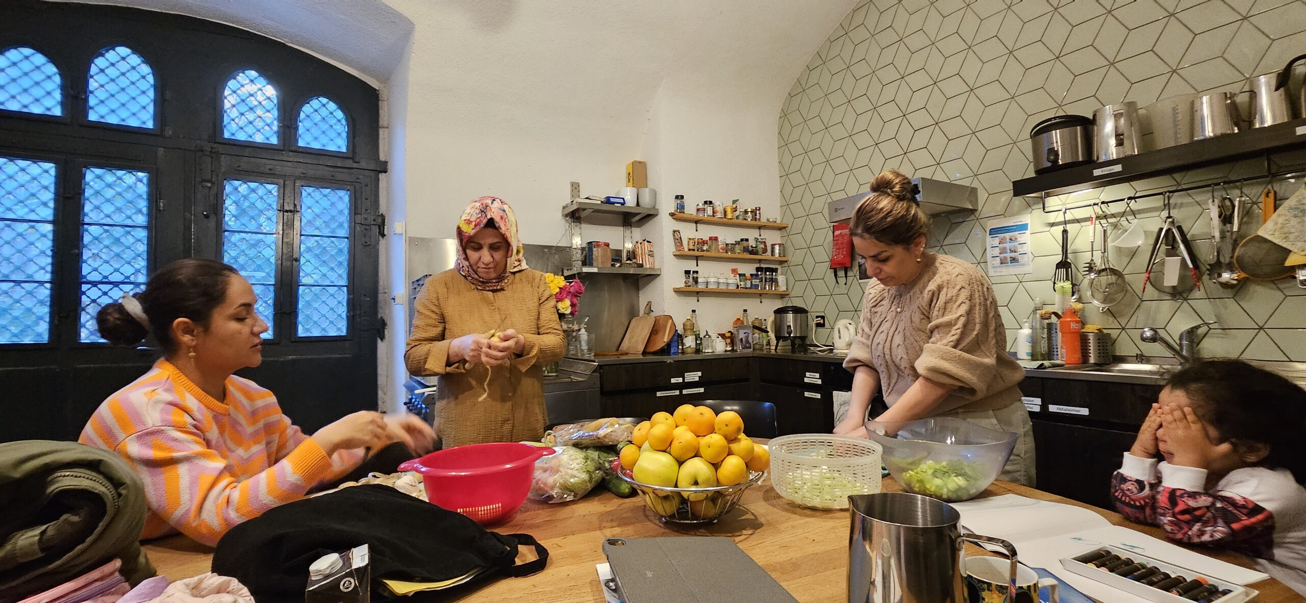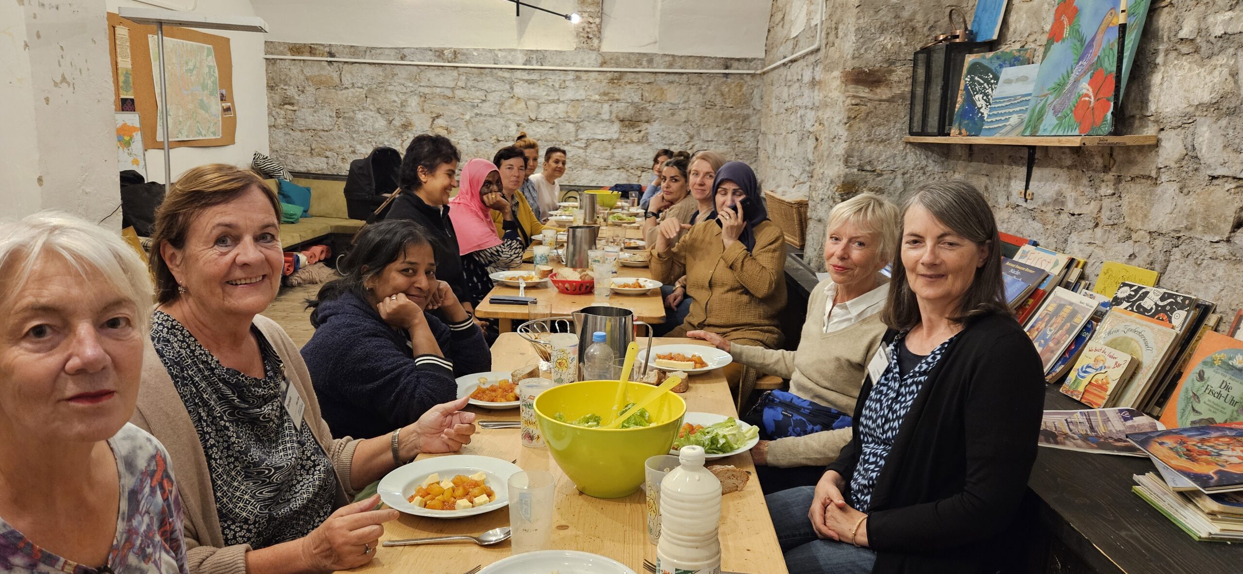 Seit März 2018 öffnet das FRAU-SEIN jeden Dienstag seine Türen. Frauen haben hier einen Raum unter sich, um sich zu treffen, sich auszutauschen, Freundschaften zu pflegen und gemeinsam Schritt für Schritt ihren neuen Lebensraum zu entdecken. Das Deutsch lernen steht für die meisten zunächst im Vordergrund. Freiwillige stehen als Lehrerinnen und zur Bewältigung der Hausaufgaben zur Verfügung und helfen bei der Vorbereitung der Sprachprüfungen. Ausserdem kochen wir gemeinsam und die Frauen haben die Gelegenheit unsere Infrastruktur zu nutzen (Nähmaschine, PC, Kopierer)